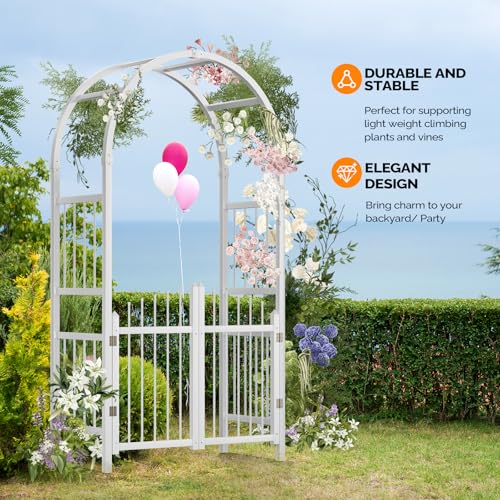 Elegant Arch: Elegant white is suitable for weddings, classy parties and just about any occasion. Whether standing alone or covered with climbing vines and flowers, these outdoor arch add a striking focal point to your event. Adding grace and prominence to any outdoor venue with the Arbor features squared lattice side panels