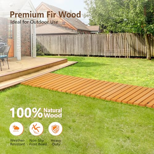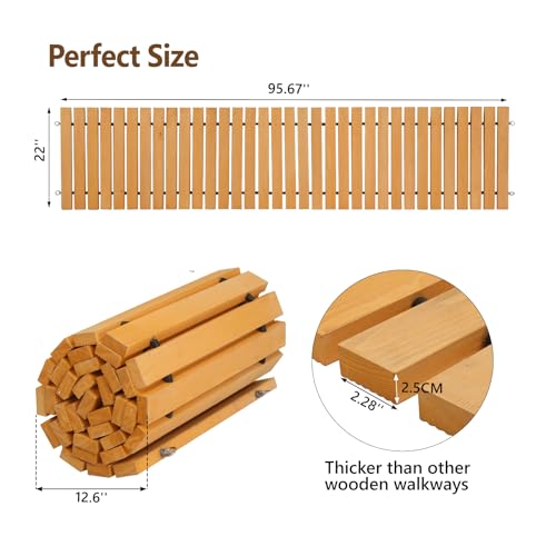 Premium Material: The garden walkway is made of premium natural fir wood, which is environmentally friendly and 100% recycled. The 2.5CM thickness and 22in width are greater than the other walkways which allows long-term and outdoor use.