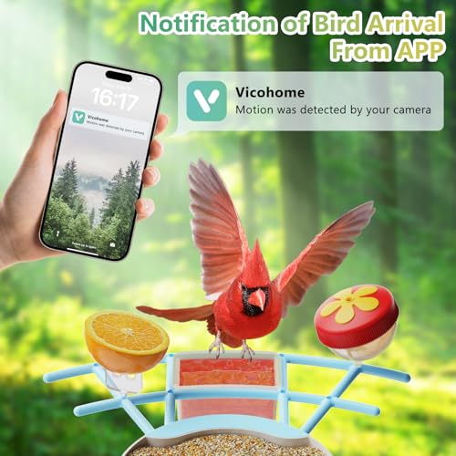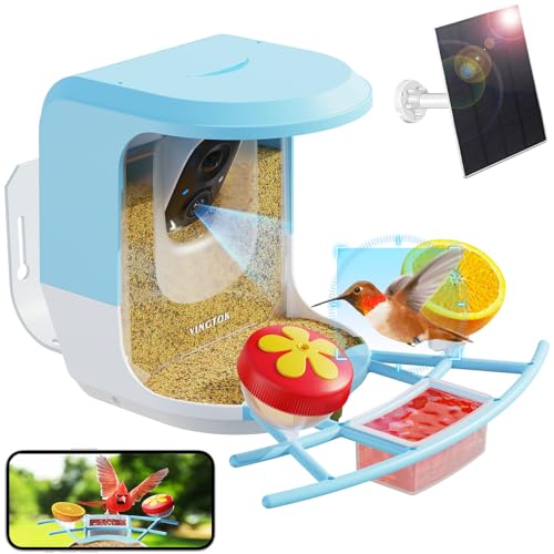 Smart AI Bird Feeder Camera: The smart bird detective camera allows you to close up feathered visitors,equipped with features like voice interaction and AI identification,the Bird watch camera identifies bird species more than 10000+ (free for 30 days),immediately identifies all visiting birds for you,hear the songs of your various backyard bird visitors,and the photos of the birds is crystal clear. infusing the feeding process with fun and enhancing engagement between you and birds