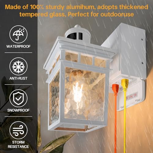 WEATHERPROOF, ANTI-RUST, WATERPROOF: Made of durable aluminum and iron, this front door wall light can be used for years without fading, waterproof, corrosion-resistant, rust-proof, and can effectively resist rainstorm, snow, ice, high temperature and other weathers. It adopts thickened tempered glass, with retro appearance and hazy lampshade, which refracts light at a wider angle and makes your home more beautiful.