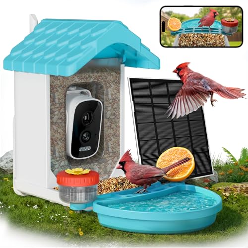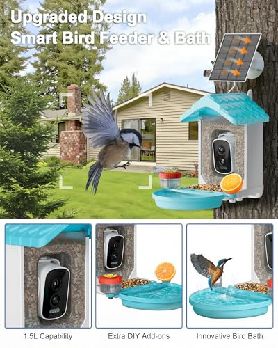 Solar Powered & Large Capacity: Equipped with a 4W solar panel and 4000mAh battery, it supports 3-6 months of wireless use on a single charge. The 1.5L large capacity reduces refilling frequency. Enjoy extended, hassle-free bird watching, ideal for busy nature enthusiasts