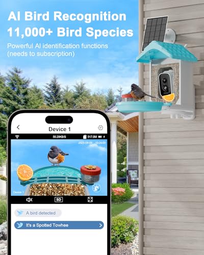 Smart AI Identification & Squirrel Defense: Get instant phone notifications when our AI identifies a bird from 11,000+ species. Watch videos via "Cloud Event" to learn about your visitors. If a squirrel is detected, the feeder emits a safe signal to scare it away, protecting birdseed for your feathered friends