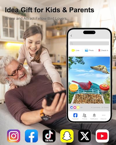 Perfect Gift with Flexible Video Storage: Save videos via TF card (not included) or cloud storage (30-day free trial). With multi-user live viewing, it's a perfect gift for holidays or nature lovers, sharing the joy of bird watching and strengthening bonds with family and friends