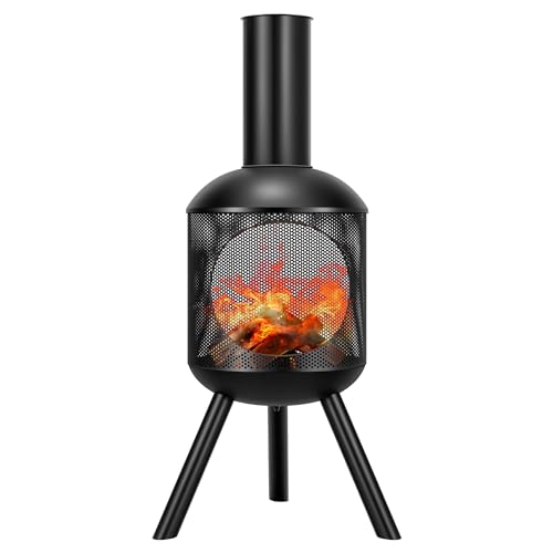 UNIQUE DESIGN - This 46-inch chiminea fire pit is designed with a unique chimney structure and mesh pattern, providing a one-of-a-kind experience of enjoying a fire and visual pleasure; It ensures your comfort and warmth during the chilly season