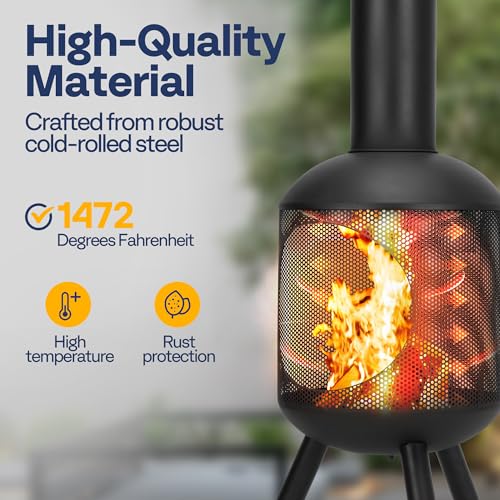 HIGH-QUALITY MATERIAL - Crafted from robust cold-rolled steel, Our VIVOHOME 46-inch Chimney-Shaped Mesh Fire Pit boasts exceptional durability, capable of withstanding scorching temperatures up to 800 degrees Celsius (1472 degrees Fahrenheit); Its sturdy construction ensures steadfastness, while its durable nature guarantees longevity even in the face of challenging weather conditions; With this remarkable fire pit, you can savor the ultimate fire-burning experience for years to come