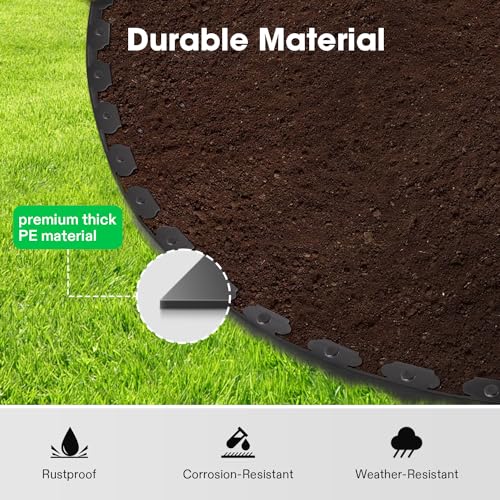 Durable Material: Crafted from premium thick PE material, our landscape edging kit is robust, resilient, and lightweight. Its rust-free, corrosion-proof, and weatherproof qualities ensure long-lasting use and low maintenance
