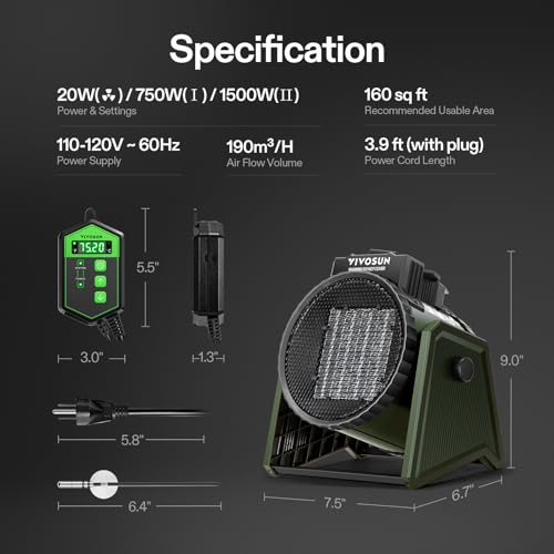 Wide Range of Applications: Heats up to 160 square feet; Perfect for greenhouses, grow tents, garages, kitchens, living rooms, bedrooms, workshops, offices, basements, and more