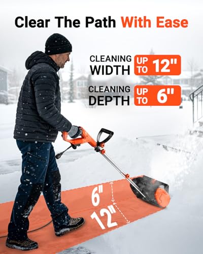 DIRECTIONAL PLATE & USER-FRIENDLY - This electric snow shovel corded does not require complex assembly steps or cumbersome operations with truly embodying the "GRAB and GO" concept. Additionally, you can freely adjust the direction of the thrown snow, fully controlling where the snow lands. You can easily throw snow to the side, front, or at a specific angle, ensuring efficient cleaning and minimizing additional snow removal work.