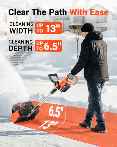 Brushless Motor & Efficient Snow Removal - Equipped with a powerful 24-Volt brushless motor and rechargeable 4.0 Ah lithium-ion battery pack, this snow shovel battery powered has enough power can clear snow up to 13 inches wide with an optimal snow clearing depth of 6.5 inches, throw snow up to 22 feet, with a maximum runtime of 25 minutes.