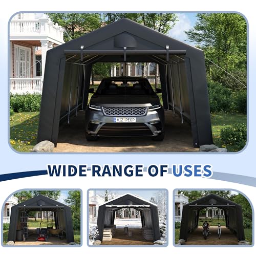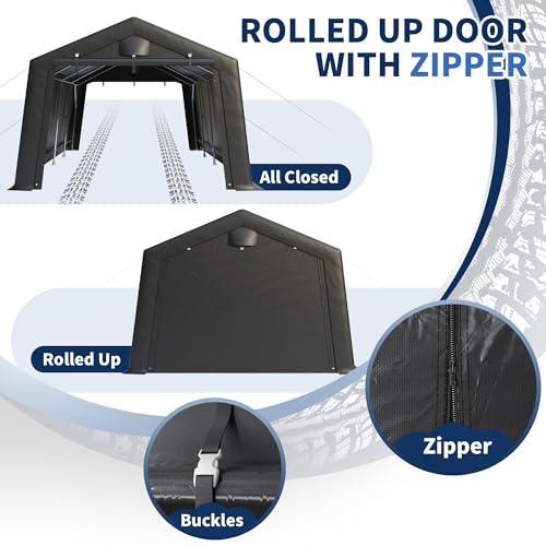 Thick Fabric?200g polyethylene fabric, shielding from wind, rain and sunlight, the carport can be used in all seasons. There are doors with zippers and buckles can be rolled up?and the doors in front and back of the portable garage make it convenient for your access.