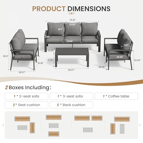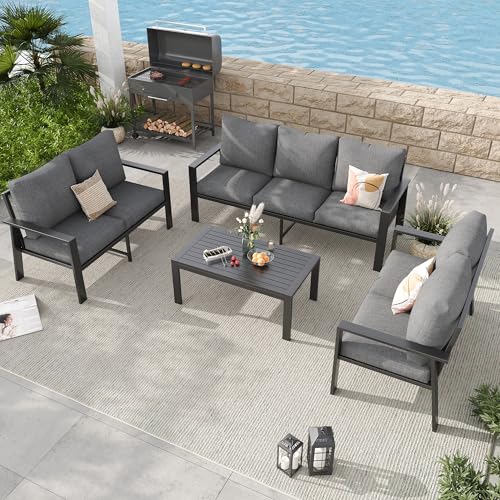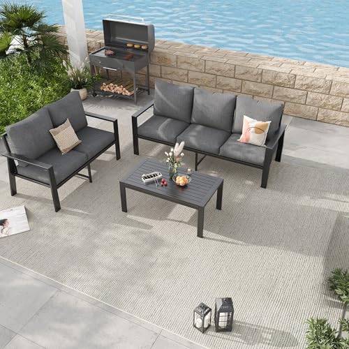 Modern Aluminum Outdoor Sectional Sofa: Space-Saving Patio Conversation Set for Small Backyard. Modern and sleek design that complements any outdoor space, whether it's your patio, porch, garden, balcony, deck or backyard.