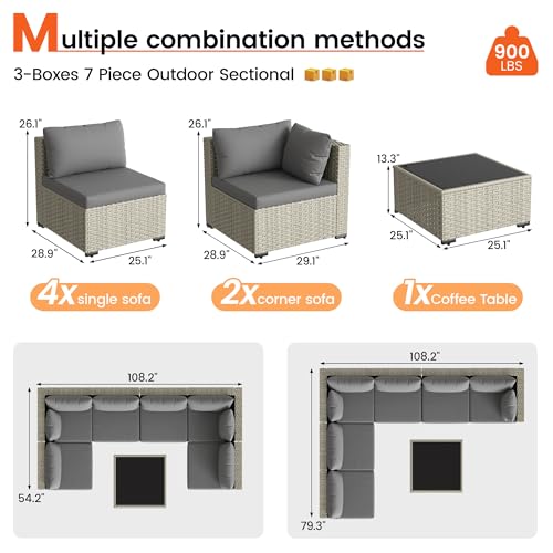 MODULAR LAYOUT FLEXIBILITY: Configure 7 pieces (6 sectional sofas + 1 tables) into L/U-shapes or custom arrangements to suit patio sizes effortlessly, which is perfect for intimate dinners or lively gatherings