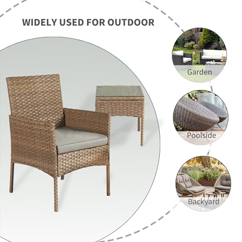 Comfortable&Convenient: The balcony furniture set sturdy rattan equipped with the soft cushion can offer you a perfect using experience. And the rattan is light, so the outdoor wicker furniture set whole weight is also light, you can move it to any suitable place easily