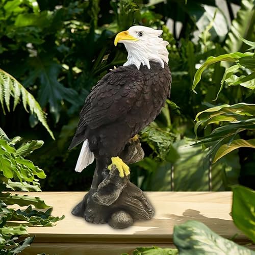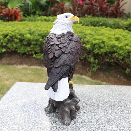 ?Best Design?We have meticulously designed the realistic texture and color of the bald eagle perched on the tree stump. Made from weather-resistant, eco-friendly resin material and coated with a UV-protective layer. Whether placed on a living room mantelpiece, desk, or in the garden, this magnificent artwork is an astonishingly unique outdoor/indoor decoration