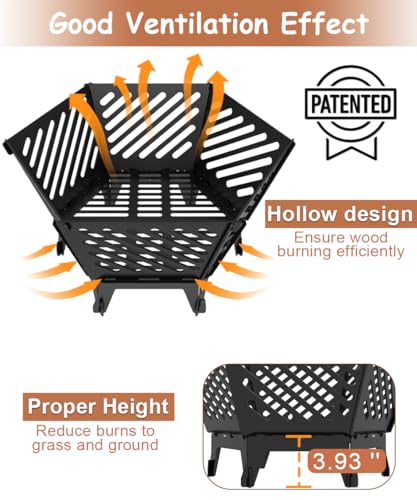 Superior Ventilation Performance: Instead of the usual fire pit ring shape, our outdoor fireplace is a patented hexagon design. The patio firepit has many diagonal vents on the six sides, and the bottom of the wood fire pits for outside is 3.9 inches high, to elevate firewood for better airflow, resulting in more efficient combustion without the gas.
