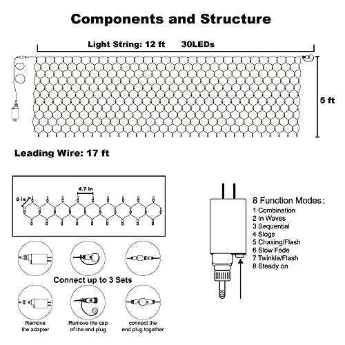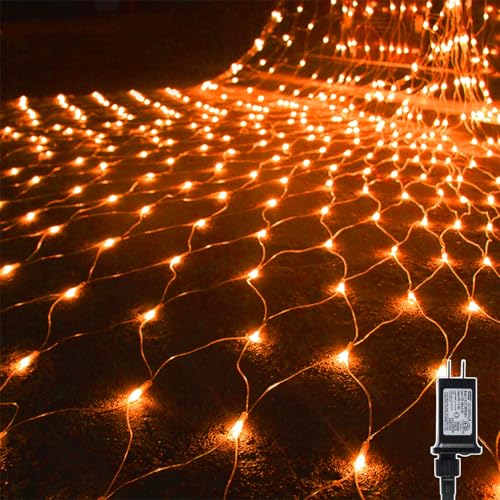 Halloween Net Lights: Orange net decorative lights, come with super bright 360 LEDs and UL Certified adapter. 30V low voltage plug, safety voltage for human body. Enjoy the twinkling net lights pleasantly! Mesh panel size 12ft x 5ft with 16.5ft lead cable. Can be extended to a maximum of 3 light chains (maximum 1000 LED), to decorate your lighting area with the desired length.