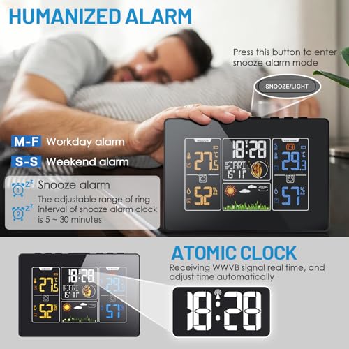 Atomic clock weather station with WWVB function: You can set the time zone (PST-MST-CST-EST); The weather station will be adjusted in real time daily via the WWVB feature; The DST feature ensures your time is accurate during Daylight Savings Time