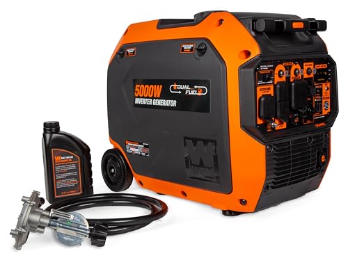 224cc dual-fuel engine runs on both gasoline (5000 surge watts, 4220 rated watts) and propane (5000 surge watts, 3800 rated watts)