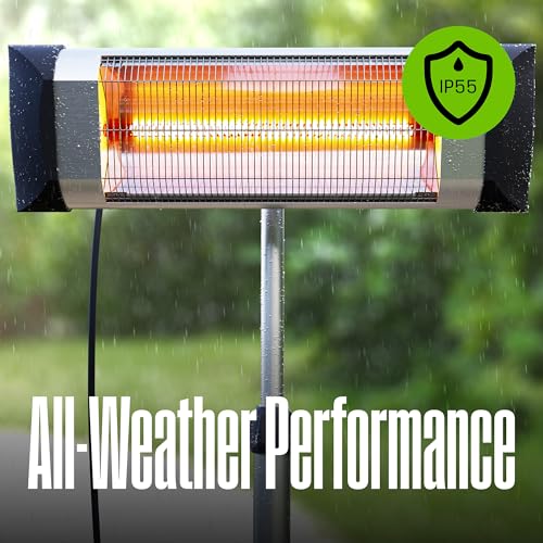 DURABLE DESIGN: The Westinghouse infrared heater is IP55 rated, making it safe to use in wet or rainy conditions; low pressure water spray or cleaning won't harm the heater. It will also provide consistent heating even in drafty or windy weather.