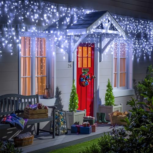 ?Waterproof Christmas icicle lights?The icicle lights is perfect for outdoor using, including heavy rain and snow. Sealed LED beads, thick gauge wire and coating all are IP44 waterproof, they make the outdoor icicle lights durable and worked great through the season. But please kindly note that the plug is not waterproof, please do some protection or keep them away from water.