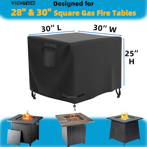 ? Designed for 28” - 30” Gas Fire Pit Tables ? Actual cover size is 31” L x 31” W x 25” H, universally for 28x28, 30x30, 28x28x24, 28x28x25, 30x30x24, 30x30x25 inch Outdoor Square Firepit Tables; Compatible with Ciays, EAST OAK, Xbeauty, Yaheetech, BALI OUTDOORS, Endless Summer, Hampton Bay, Tacklife Propane Fire Pit Tables, etc