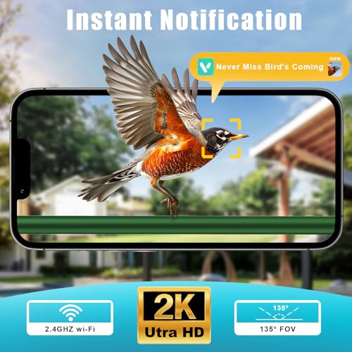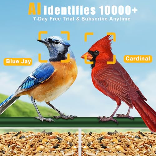 Smart Bird Feeder with AI Recognition:Instantly identifies 10,000+ bird species and sends real-time notifications to your phone. Includes 7-day free AI recognition trial(Subscription needed after trial).