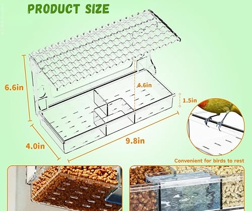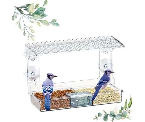 Easy Installation with Strong Suction Cups No tools or assembly needed,Just press to install on any window – easily mount this bird feeder to any window with large ultra-strong suction cups.This window-mounted bird feeder holds tight through rain, wind, or snow—perfect for any outdoor bird feeding setup.