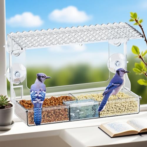 Crystal Clear Viewing Experience Made of premium clear acrylic, enjoy a full panoramic view of colorful wild birds with our clear window birdfeeder, Ideal for kids, seniors, and curious cats alike.