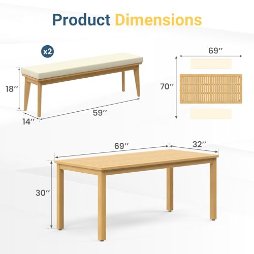 ?Exceptional Strength and Durability?The frame is made entirely of premium acacia wood, a material renowned for its density and resilience. It effectively resists warping, cracking, and surface wear, making it particularly well-suited for high-use furniture such as patio dining table sets.