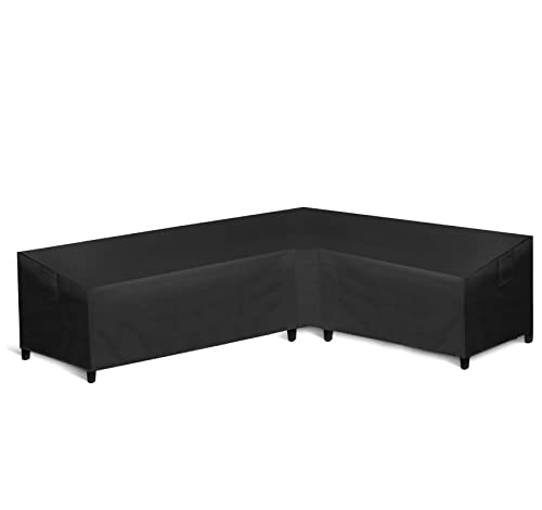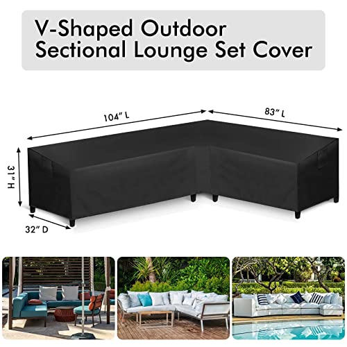 OUTDOOR SECTIONAL COVER SIZE: Measured with 104"L x 83"L x 32"D x 31"H Right Facing, perfectly fit for most L-shaped sectional lounge sets. But please measure your sofa carefully before purchasing.