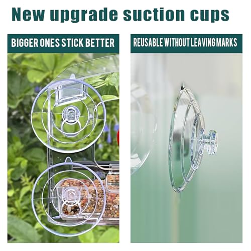 Super Strong Suction Cup: WLLKOO Window Bird Feeder 2 pack is designed with 8 super strong suction cups can make the window bird feeder bear 12 pounds even squirrels jump on it without dropping it.
