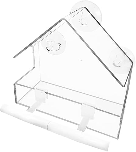 Clear Viewing Detail: Window bird feeders provides spectacuar view with clear acrylic and house shape Design, watch cardinals, blue jays, finches,small birds, juncos, chickadees, nuthatches, titmice, sparrows and more enjoy themselves through this completely see through, transparent feeder.