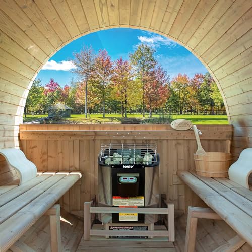 ? [BARREL FOR BETTER CIRCULATION] the heat gets circulated back down along the curved walls instead of pooling near the top, this creates a constant flow of evenly distributed heat throughout the sauna.