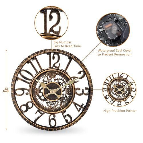 RELIABLE OUTDOOR CLOCK: Designed for gardens, patios, and poolside areas, this clock is a reliable outdoor timepiece. Its waterproof construction ensures long-lasting performance, while the steampunk-inspired design adds a touch of vintage charm. It can also be used indoors to enhance the decor of your living room, bathroom, or office.