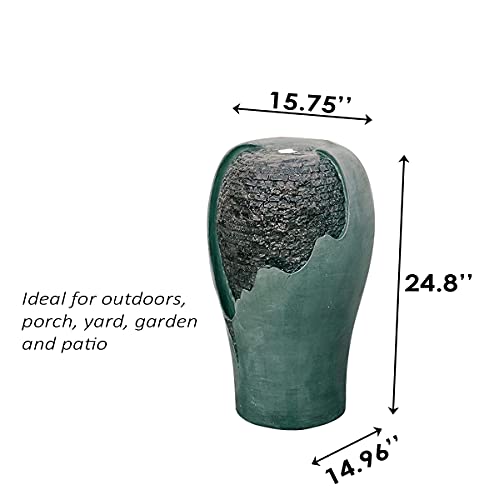 GREAT SIZED AND LONG-LASTING: Fountain measures 14.96"W x 15.75"L x 24.8"H, cord length 6 feet, made of durable polyresin that ensures high quality for years
