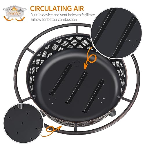 Solid Steel Construction & Good Heat Resistance: Founded atop three sturdy metal legs, this 36 inch round garden fire pit features a heavy-duty metal construction finished with high-temperature paint, ensuring high strength and durability to withstand the heat of flames