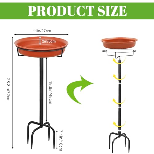 ?Sturdy Base?Heavy duty steel stake with 4 solid prongs makes this bird bath stay in the soil of your garden upright and firmly. This birdbath is uneasy to bend, break or fracture, keeping your yard or garden full of songbirds all year long.