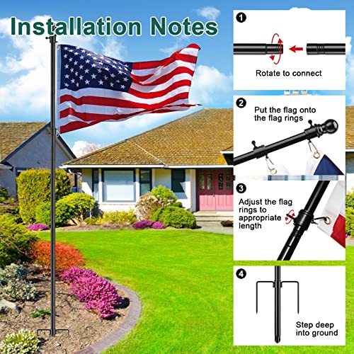 All-in-One Flag Kit: Get everything you need in one go! Our flag pole kit includes one heavy duty stainless steel flagpole,two tangle-free flag rings and a bonus 3x5 ft American Flag, making it super easy to set up and start showing your patriotic spirit