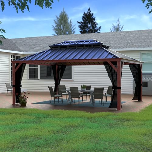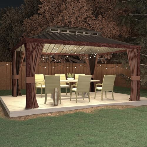 Unique Wood Coating Design: By utilizing heat transfer technology, this gazebo features a powder coating that replicates the look of natural wood grain, while the interior structure is made of sturdy aluminum. This combination not only adds to the beauty of the gazebo, but also ensures its durability for long term use