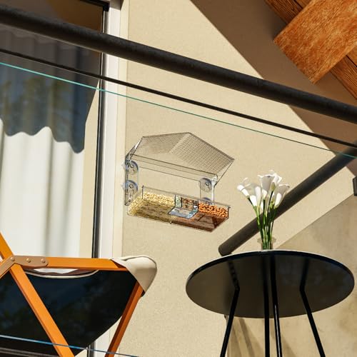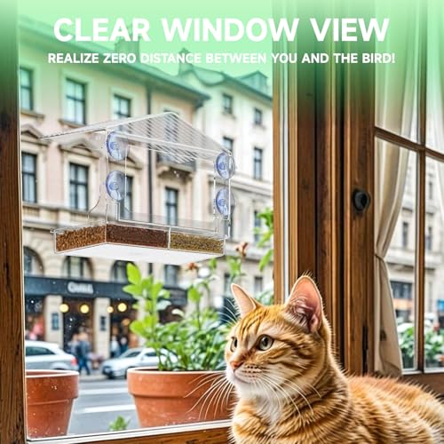 ?Clear Window Bird Feeder?our window birdfeeder transparent Made with super clear plastic materials, it provides an unparalleled view of your feathered visitors, bringing nature right to your window and Experience the thrill of close bird watching
