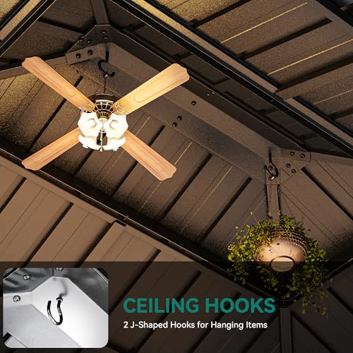VENTILATION & UTILITY - Experience optimal airflow with the double-top vented galvanized iron roof, designed to prevent overheating and withstand windy conditions. YITAHOME structure includes a built-in center hook, providing a convenient mounting point for electric fans or decorative lighting to suit your needs.