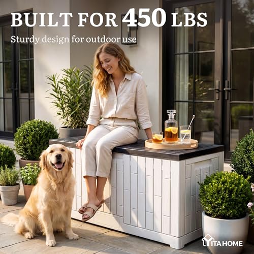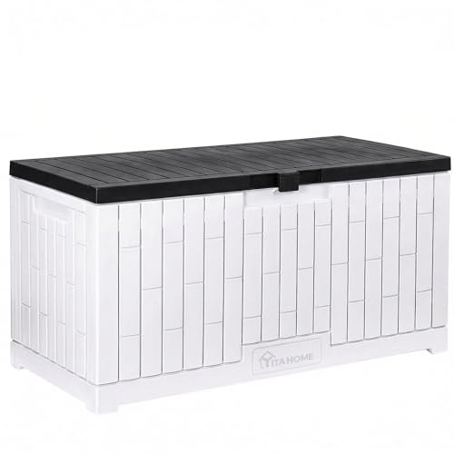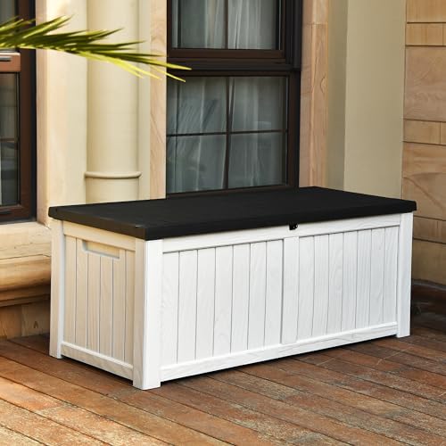HIGHLY DURABLE: Structured with all weather-resistant resin that prevents fading and rusting;Added Iron rods for deck box's extra support and strength
