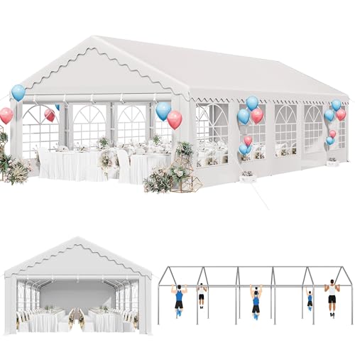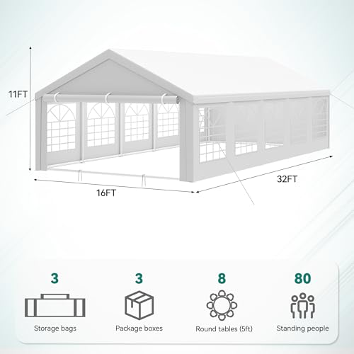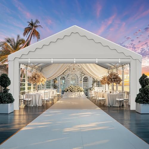 VERSATILE USAGE- This canopy party tent is a multi-functional shelter that grants guests shade and protection from rain; Great for commercial and recreational use; It is the ideal temporary outdoor gathering place for weddings, graduations, picnics, parties, BBQ, backyard eventsand so on