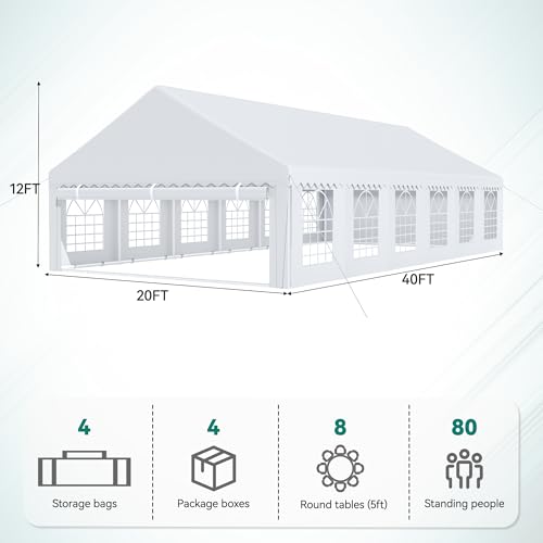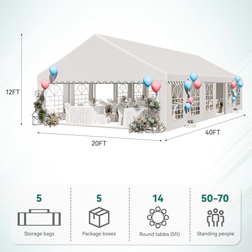 YITAHOME 20x40 ft Party Tent Outdoor Wedding Event Shelters Heavy Duty Upgraded Galvanized Canopy with Large White Roof, Removable Sidewalls & 4 Storage Bags