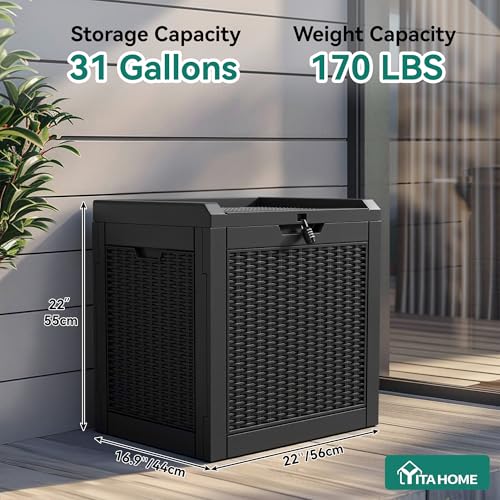 32 Gallon Capacity: External measuring 22.1''L x 17.1''W x 20.9''H , this outdoor storage box provides ample space for accommodating patio cushions, garden tools, and other small items