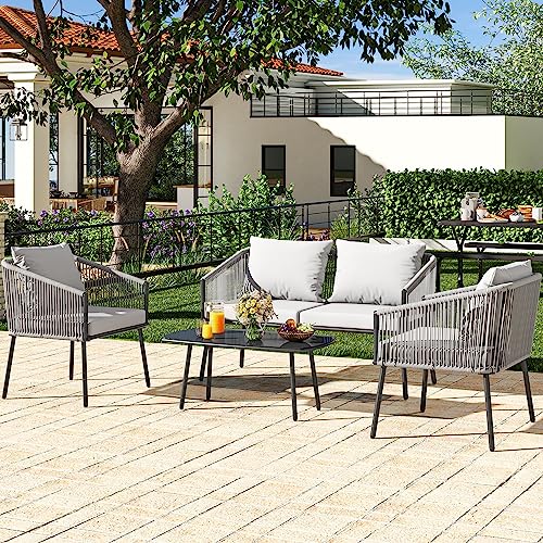 Comfortable Seat: Looking to experience outdoor leisure in style and comfort? This outdoor furniture set fits the bill; Ample seat space with thick cushions allows cozy family time; Cushion cover is detachable for easy maintenance