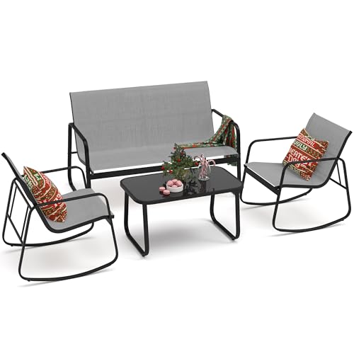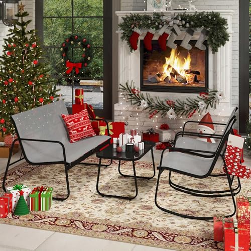 Easy Assembly: The overall structure is simple and comes with an illustrated instruction manual, allowing for assembly to be completed in approximately 45 minutes. Package includes: 2 Rocking Chairs, Loveseat & Coffee Table