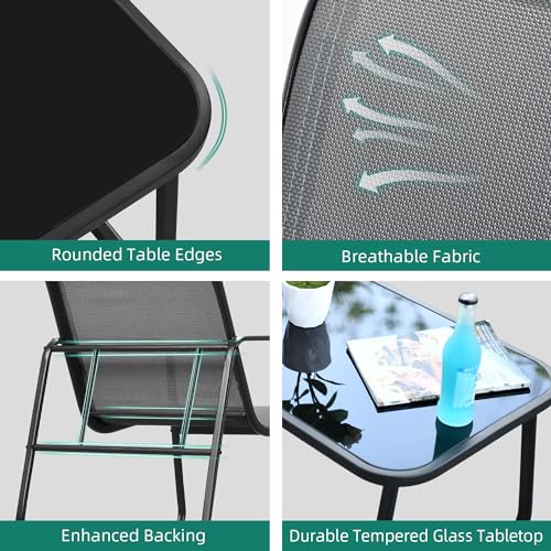 Supreme Comfort: Textilene fabric conforms better to the body, providing a more comfortable seating experience; This patio set feature curved armrests and tabletop edges, reducing the risk of accidents and ensuring a worry-free experience for you and your loved ones.