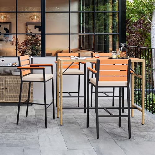 Sturdy and Durable: Our patio conversation set consists of 4 high bar chairs and a high bar table, all crafted from heavy-duty metal frames; The special triangular reinforced design on the high bar table enhances stability compared to alternatives for outdoor use