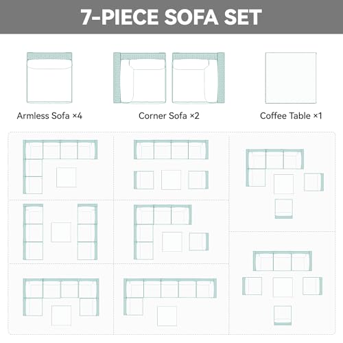 Infinite Combination: Configure this 7-piece outdoor furniture set including 2 identical corner sofas, 4 armless sofas and 1 table at will to elevate your patio, pool, garden, courtyard, backyard, porch, or balcony, savoring outdoor leisure with your friends or family